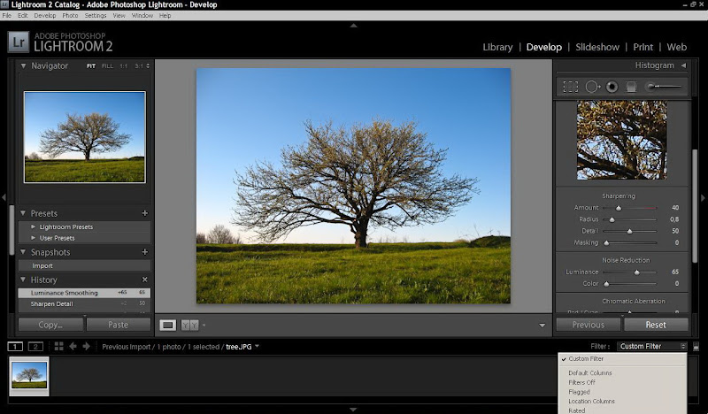 Для того, чтобы не производить эти действия над каждой фоторгафией, можно сохранить порядок действий и использовать их над другими фотографиями. Это можно сделать, выбрав в меню Filter, в правой нижней части экрана, пункт — «Save Current Settings as New Preset...» и сохранить настройки под понятным нам потом названием. Я рекомендую это сделать именно на этом шаге, потому что последующие действия для каждой фотографии могут быть индивидуальны.