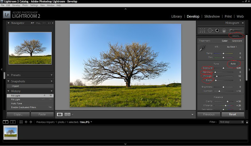 Далее идем опять на закладку Basic и нажимаем Auto. Если результат не нравится, играемся ползунками. Fill Light можно навалить и побольше. Blacks тоже по вкусу. Recovery лучше вообще не трогать, уродуется фотография.